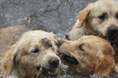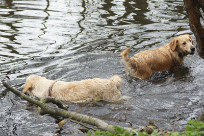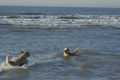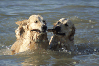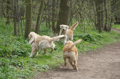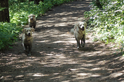 Honden zijn het gelukkigst als ze iets te doen hebben. Helaas zijn er nog te veel baasjes die denken dat vier keer tien minuten uitlaten wel voldoende is. Elke dag minstens een uur loslopen is voor een Golden Retriever heel belangrijk. En de wandelingen zijn voor de baasjes ook leuk en gezond. Onze honden gaan dan ook elke dag naar het bos of het strand. Ze vinden het heerlijk!
