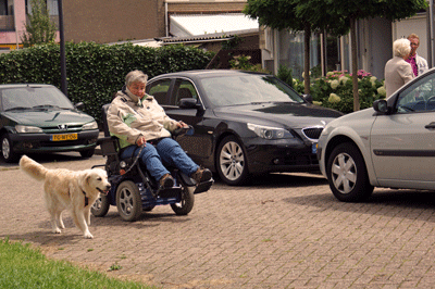Onze Goldens zijn allemaal familie van onze eerste hulphond Queen. Ze lopen allemaal vanaf 10 maanden dagelijks mee aan de rolstoel.