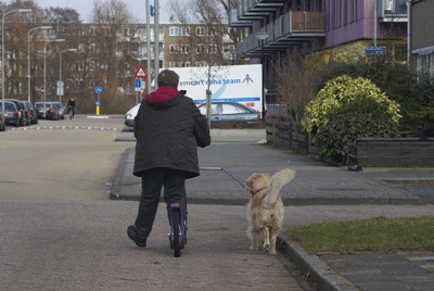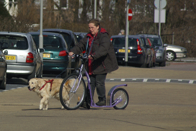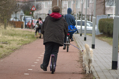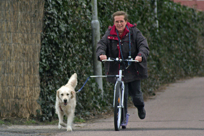 Naast de dagelijkse losloop wandelingen lopen onze honden ook graag mee aan de step. De step is ook handig als de honden loops zijn. In die periode kunnen ze niet los, maar moeten ze wel hun energie kwijt. Het grote voordeel van de step is dat je zelf contact hebt met het wegdek en ook gemakkelijk bij de hond kan komen.