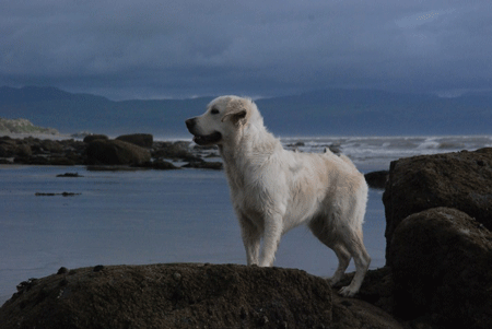 Afgelopen week is Aiko voor het eerst echt mee op vakantie geweest. Ze is wel eens mee geweest uit logeren hoor, maar zo ver rijden en een week in een huisje nog niet. We gingen naar Wales, naar een prachtig natuurgebied waar honden bijna overal los mochten. We hebben ons dan ook bijzonder goed vermaakt, we hebben veel heerlijke wandelingen gemaakt en honden waren bijna overal welkom dus we hebben ook kastelen en tuinen kunnen bekijken. Dan is het toch wel erg prettig om zo’n braaf hondje te hebben, ze kan er echt van genieten om elk hoekje en gaatje te bekijken en bij elk kasteelraampje moest ze even blijven staan om het uitzicht te bekijken. Ze heeft er sinds de vakantie ook een leuke nieuwe hobby bij, namelijk stenen verzamelen! Vooral uit beekjes en ze maakt er een heel apart geluid bij.