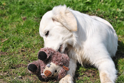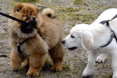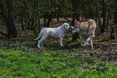 Samen spelen met de even oude pup van mijn opa en oma is dolle pret.