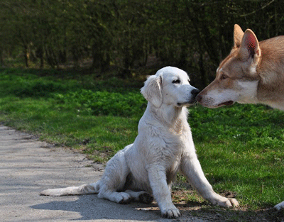 Aiko heeft er sinds een half jaar een hondenmaatje bij!! Hij heet Ronin en hij is alweer 8 maanden. Ze verschillen als dag en nacht, maar dat is juist erg leuk want ze nemen veel positieve dingen van elkaar over. Toen hij net bij ons kwam was Aiko heel erg voorzichtig met hem en stiekem vond ze hem toch ook wel spannend, vooral omdat hij onder haar door kon lopen. Nu kunnen ze af en toe flink ruig spelen met elkaar, maar het zijn dikke maatjes! Op pad gaan met allebei is een feest en ook samen trainen is geen probleem. Maar ik ga ook vaak genoeg met één van beiden alleen op pad en daar genieten ze ook weer van.