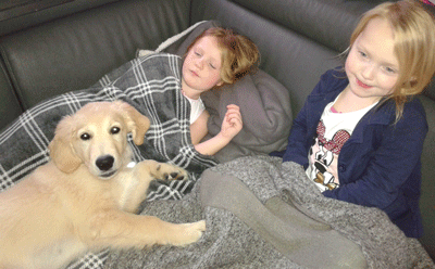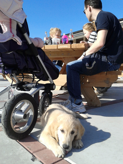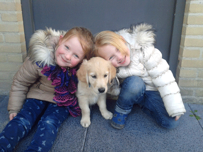 Cooper hoort bij ons gezin en gaat als dat kan overal mee naar toe. Gezellig meelopen naar school om de meiden op te halen vindt hij reuze gezellig! Als de meiden naar school zijn, mist hij ze wel. Dan is hij echt op zoek om iets te doen. Inmiddels heeft hij de puppycursus gedaan en zijn we op zoek naar een geschikte vervolg cursus. Alhoewel Cooper goed luistert heeft hij nog wel wat te leren, want eigenwijs is hij wel.