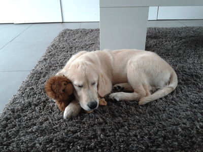 Wij zijn heel blij met deze lieve hond en wij denken dat dit andersom ook geldt. De dierenarts vindt het een hele mooie reu! Lekker stevig en kerngezond. De dierenarts heeft niet vaak gezien dat de fokker een puppy zo goed overdraagt. Dus een groot compliment voor Marja en Anita.