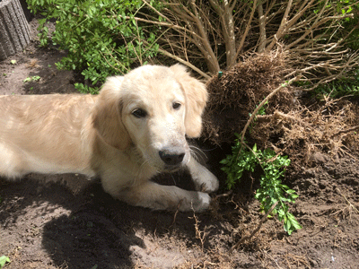 Tuinieren is een echte hobby van Cooper en wil altijd graag een pootje helpen. Met als gevolg dat er een mooie kuil in een snel tempo is gemaakt.