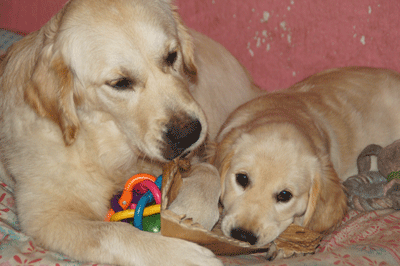 Zusje Ruth (links) en Cato 10½ week oud