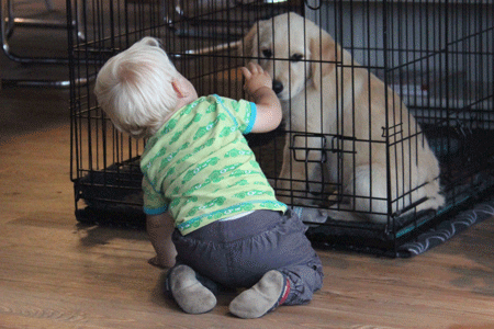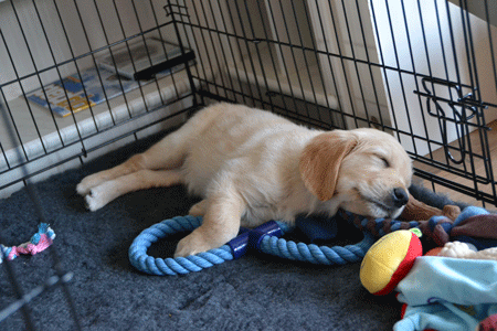 Slapen in de bench; het was even wennen, maar het ging al snel heel goed. En tot onze verbazing was hij vanaf het begin al zo goed als zindelijk.