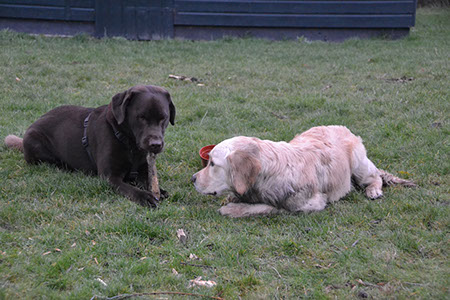 Knox en Cooper zijn dus de beste maatjes en we hopen dat dat zo blijft, want het zijn natuurlijk wel twee heren. Tot nu toe gaat het prima; als ze elkaar weer voor het eerst zien breken ze ongeveer het huis af (of de tuin) en gaan vervolgens hun eigen gang met stoeipartijtjes tussendoor; prachtig om te zien hoe blij ze elke keer zijn om elkaar te zien.