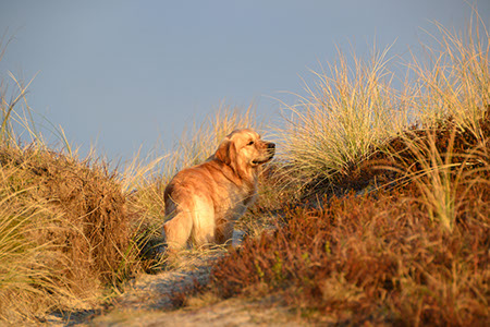 Cooper is een echte natuurhond; we wandelen veel in de bossen, door de duinen en aan het strand en aanlijnen is slechts zelden nodig. Hij kan lekker z’n gang gaan, maar blijft tot nu toe altijd in de buurt en houdt ons goed in de gaten. Heerlijk; een hond die vrijwel altijd direct komt als je roept of fluit. En als hij eens iets langer wegblijft dan weten we het wel; dan ligt er ergens iets heeeeeeel lekkers…..!!!! Met z’n uitstekende neus weet ie dat altijd met gemak te vinden. Eerlijk is eerlijk; we hopen van harte dat hij bij het ouder worden wat minder gericht raakt op zaken als krabbenpoten, zeewier, schapenpoep en andere onsmakelijke uitwerpselen.