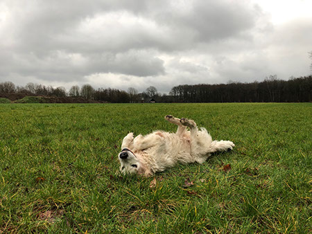 Mijn hobby’s zijn: trekspelletjes doen, dingen pikken (maar ik maak nooit iets kapot), zwemmen en door plassen rennen in het bos. Ik ben graag nat en vies. Ook vind ik het leuk om achter een bal aan te rennen, maar dan laat ik ‘m lekker liggen waar ik ‘m heb gevonden. Apporteren laat ik liever aan een ander over tenzij er iets heel lekkers tegenover staat.