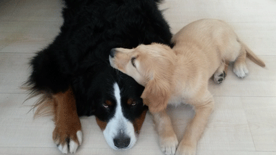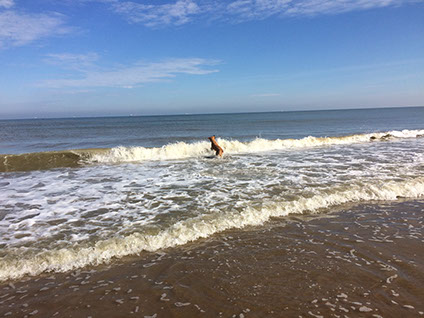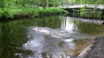 De eerste nacht is gelijk heel goed gegaan , heel even gepiept maar dat was snel over. Ze vindt alles leuk , overal gaat ze achteraan , overal wil ze mee spelen. Zwemmen is wel haar favoriet en in vieze stink grachten gaan. Ohhhhh wat stonk ze zeg maar snel in een andere beek en ze was weer schoon.