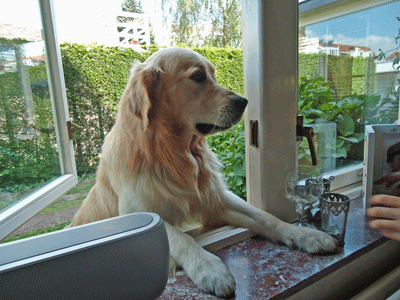 Verder is hij absoluut gek op water, eigenlijk op zwemmen. Een bal of stok ophalen uit het water interesseert hem niet. We zijn veel ballen kwijt daardoor. Het gaat hem allen maar om het zwemmen! Het lijkt wel dat hij net als onze twee kinderen aan topsport wil doen.