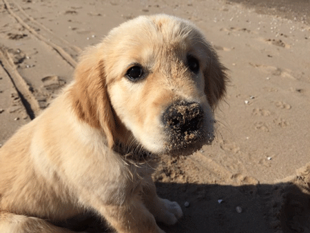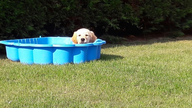 Ze mag nog niet in het water omdat ze haar entingen nog niet allemaal gehad heeft, maar op dat punt zal ze zich ongetwijfeld ook van haar beste golden-kant laten zien.
