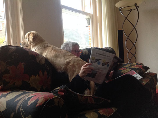 Nadat wij ruim 2 jaar geleden op 15,5 jarige leeftijd afscheid hebben moeten nemen van onze (tweede) golden Lucca was er even geen sprake van weer een hond in ons leven. Het afscheid viel me zwaar, maar na een jaar gingen we toch weer denken aan een hond of hondje. Want, moest het weer een golden worden, of nu iets kleiners, dat je makkelijker mee kan nemen. Uiteindelijk viel de keuze toch op een golden, want het bloed kruipt toch waar het niet gaan kan.
