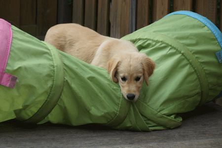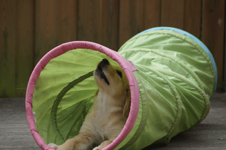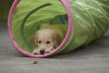 Inmiddels hebben we de puppytraining voltooid. De laatste les werd besteed aan het doen van spelletjes. Cato vindt alles leuk en ze had het voordeel dat ze bij Anita en Marja al was opgevoed met de tunnel en de ballenbak. Nu hebben we even " vakantie" en kunnen we nadenken wat we hierna gaan doen.