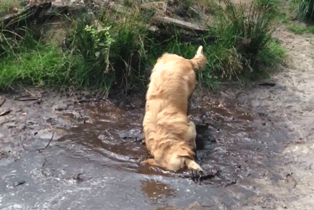 Ze zijn gek op water. Een Golden kijkt daarbij niet kritisch naar de kleur van het water. Als het maar nat is. Als je lekker hebt gewandeld, en daar moet je echt van houden als je aan een Golden begint, moet je ook weer naar huis. De meesten van ons wonen niet aan de rand van een bos of park. Wij gaan altijd met de auto. Ook als onze dames een vies bad hebben genomen gaan ze graag weer mee naar huis. Denk dus maar niet dat je het hebben van een Golden kunt combineren met een brandschone auto. Want weer of geen weer, die hond heeft zijn wandeling echt nodig. Of het nou vriest of dooit.