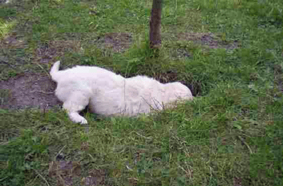 Minpunten????????? Zijn die er echt? Nou en of! Misschien heb je het knopje Bedrabbled al bekeken. Dan heb je één minpunt al te pakken. Want dat Goldens viezerikken zijn is een ding dat zeker is. Ze zijn gek op viezigheid. En dat kan variëren van pas gemaaid gras tot kadavers. Even er aan ruiken en daar gaan ze. Ze rollen er lekker doorheen. Een koeienvlaai krijgt meestal dezelfde behandeling.