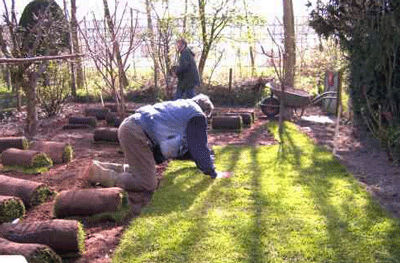 .......dan maar nieuw gras leggen........ .......en de honden moesten heel lang achter het hekje.......