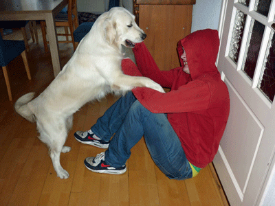 Mijn andere hobby’s zijn zwemmen, het liefst in de zee, en in de duinen en in het bos achter wild aanzitten. Ik ga altijd met Hetty en Fred mee op vakantie. Ik ben al in veel landen geweest en ook al twee keer op wintersport, sneeuw is helemaal mijn ding! Deze zomer gaan we naar Engeland, het land waar de Golden Retriever oorspronkelijk vandaan komt.