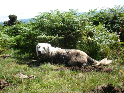 Op vakantie in Dartmoor (Engeland) was Nientje natuurlijk weer een paar keer verschrikkelijk VIES!