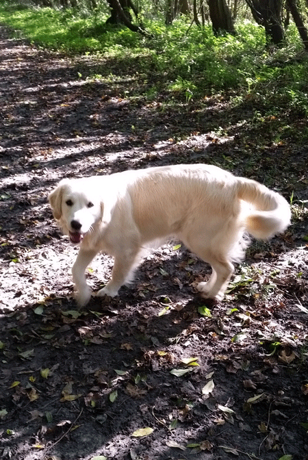 Ook met andere honden gaat het steeds beter, ze heeft echt al 'vriendjes' en 'vriendinnetjes' gemaakt. Bij onbekende honden gaat ze wel nog steeds direct plat op haar buik!