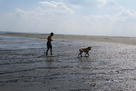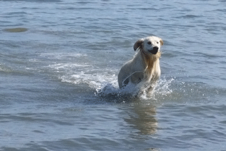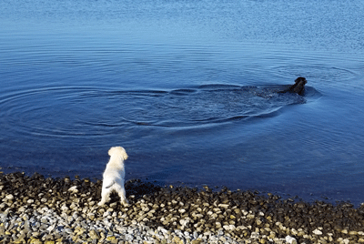 Ze is dol op zwemmen, we nemen haar mee naar de Grevelingendam om haar schoon te laten zwemmen, voor als ze weer eens zwart ziet van het graven! Want graven en kliederen vind ze geweldig!