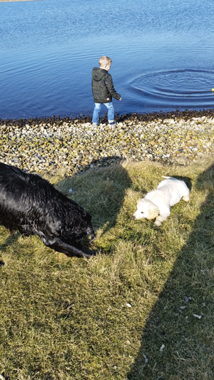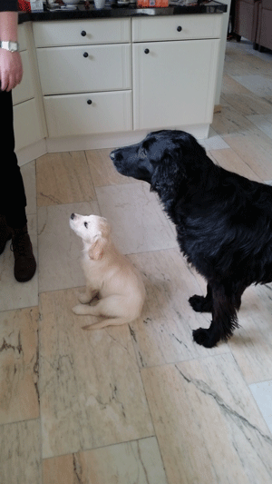 We zijn nu ook op de helft van de puppy cursus, dit gaat ook heel erg goed. Senna word altijd gebruikt in de les als voorbeeld hoe we de oefening moeten doen, ze pakt alles super snel op en ze word ook echt enthousiast als we uit de auto stappen bij het voetbalveld waar de cursus gegeven word. Wekelijks is ze ook minimaal 1 dag bij Bart z'n zus die een flatcoater heeft genaamd Donna. Donna en Senna zijn echt dikke vriendinnen, Donna heeft ontzettend veel geduld met Senna, terwijl Senna haar tandjes toch flink in de oren van Donna gaan. Onze jongens Mika en Finn zijn ook nog iedere dag blij dat Senna er is. In de eerste week zei Mika: mama ik ben zo blij dat wij nu eindelijk ook een hondje hebben. We leren de kids de commando's te gebruiken die we op puppy cursus leren, en Senna reageert en luistert naar de jongens ook heel erg goed. Nogmaals hartelijk dank voor de lieve pup die jullie ons gegund hebben.