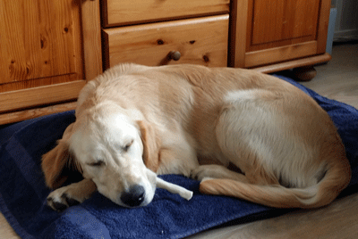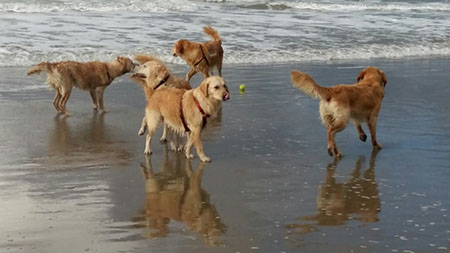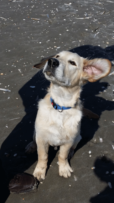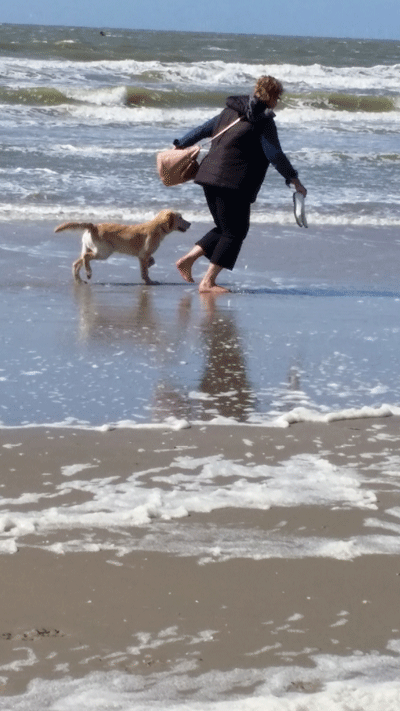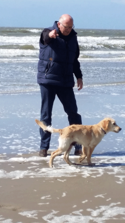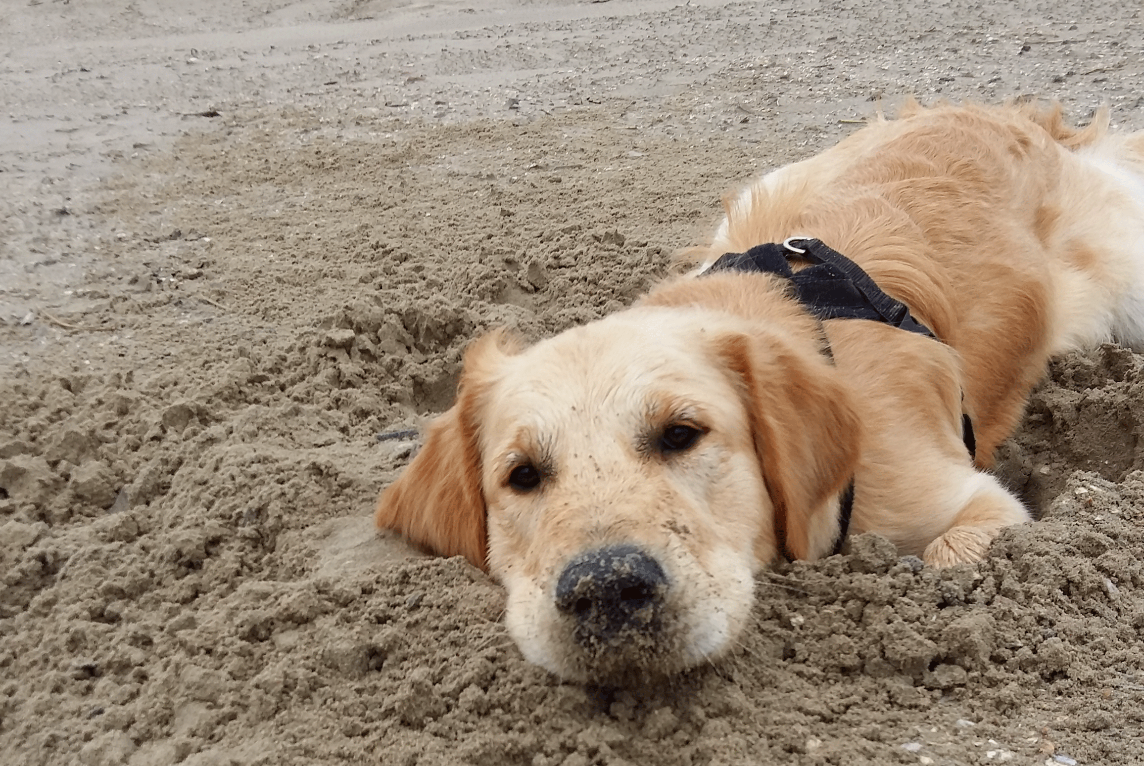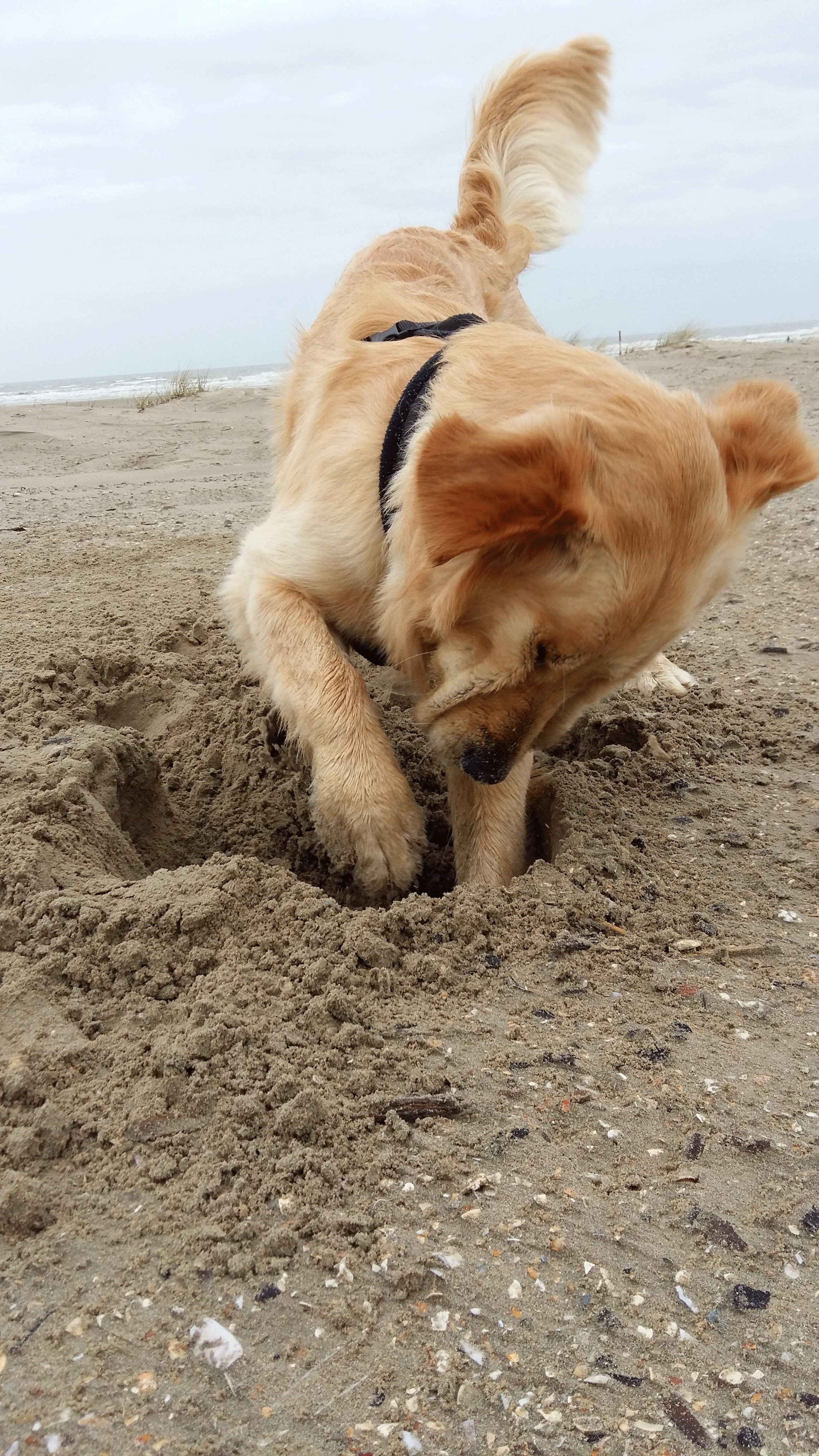 Tommy is ook gek van het strand. Het is alleen hele klus om hem naar het harde zand te tillen. Want Tommy weegt inmiddels 23 kilo!