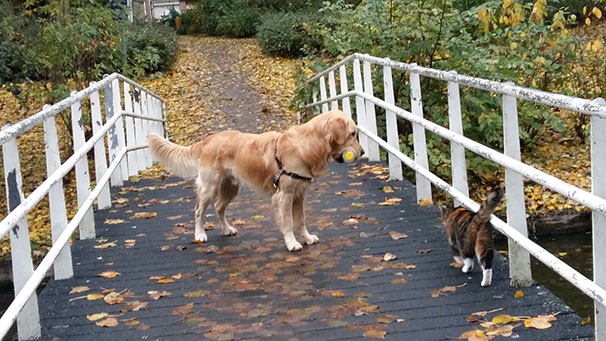 Hij is een echte allemansvriend , zelfs op onze eigen katten is hij gek.