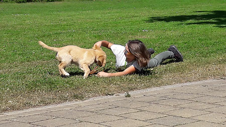 Verder heeft hij heel veel plezier gehad met alle kindertjes die bij ons op het veldje stonden, lekker knuffelen en stoeien met hun allemaal.